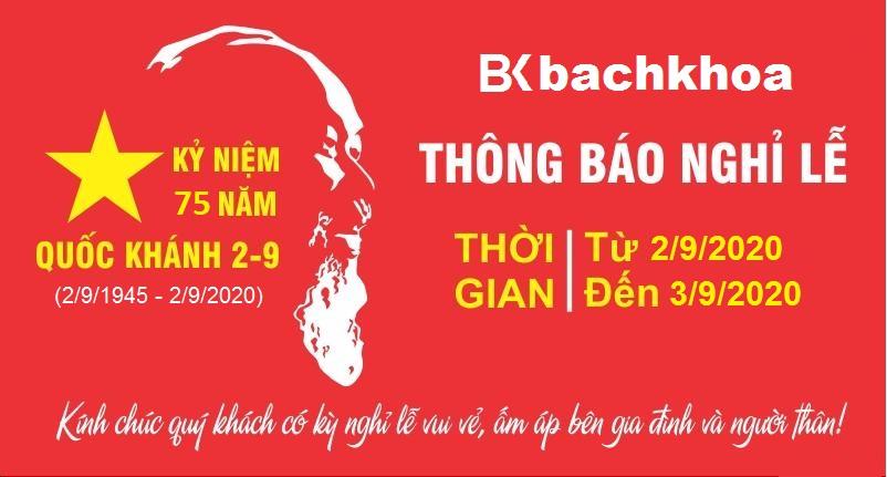 Nhân dịp kỉ niệm 75 năm Quốc Khánh nước Cộng Hòa Xã Hội Chủ Nghĩa Việt Nam 2/9/1945 – 2/9/2020. Công ty TNHH Công Nghệ Cao Bách Khoa xin kính chúc Quý khách sức khỏe dồi dào và có nhiều thời gian vui vẻ bên gia đình. Cùng với đó, Bách Khoa xin thông báo […]